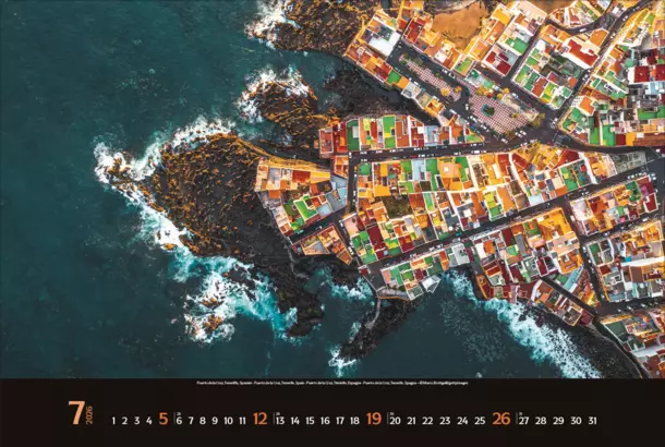Faszinierende Ansichten aus der Drohnenperspektive bietet dieser Panoramakalender. Ob Städte, Landschaften, Naturphänomene oder von Menschen erzeugte Bewegungen - von oben fotografiert zeigen sich dem Betrachter spannende Muster und Szenerien. Ein Must-have für alle, die sich für Drohnenfotografie begeistern oder das Kunstwerk Erde aus neuen Blickwinkeln entdecken möchten.