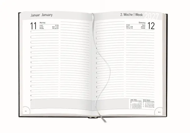 Nachhaltige Timer aus umweltfreundlichen FSC-Papier mit strukturiertem Einband. Kal 14,5 x 20,5 cm